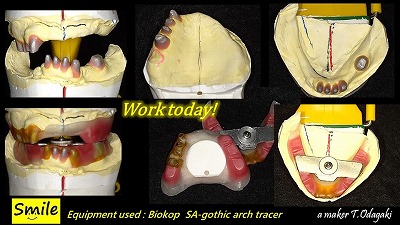取り敢えずパテで仮咬合採得、バイオコープにマウントしゴシック・アーチを組込み、バイトを採得する事になりました。